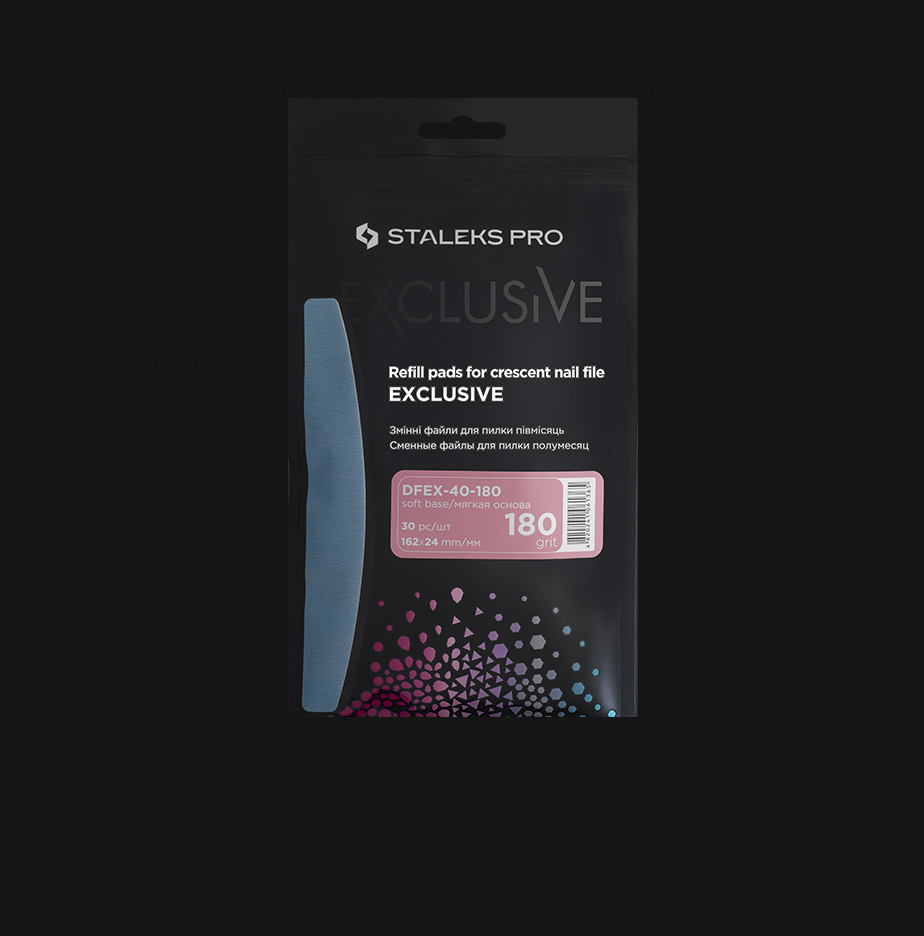 Sada nalepovacích jednorazových pilníkov Staleks PRO Exclusive 42 DFEX-42-240 sa v prvom rade stará o zdravie klienta a nechtové platničky. Jednorazové pilníky zabezpečujú hygienu a bezpečnosť procedúr manikúry a pedikúry. Náhradné pilníky sú určené pre kovový základ v tvare polmesiaca. Vysokokvalitné prémiové švajčiarske brúsivo ľahko dodá nechtovej platničke dokonalý vzhľad. S takýmto pilníkom sa požadovaný výsledok dosiahne rýchlejšie. Pilníky sú odolné voči vlhkosti, nehýbu sa, nepremoknú, čo zabezpečuje pohodlnú prácu. Zrnitosť 240 grit. Veľkosť 16,2 x 2,4 cm. Používa sa so základňami: MBE-40, SPBE-40.