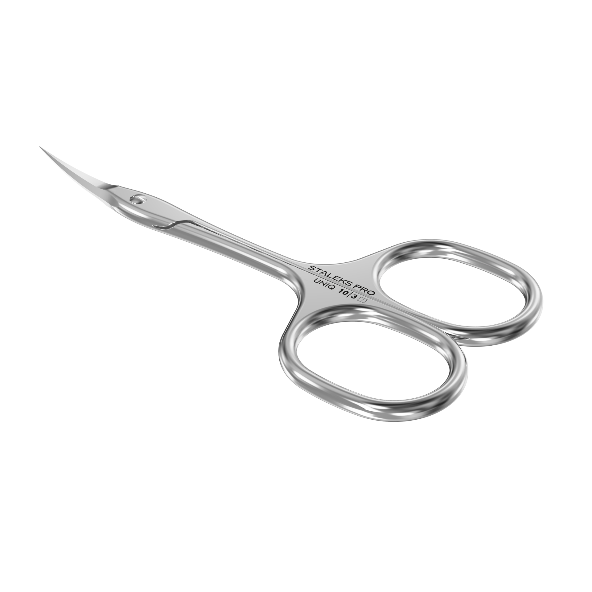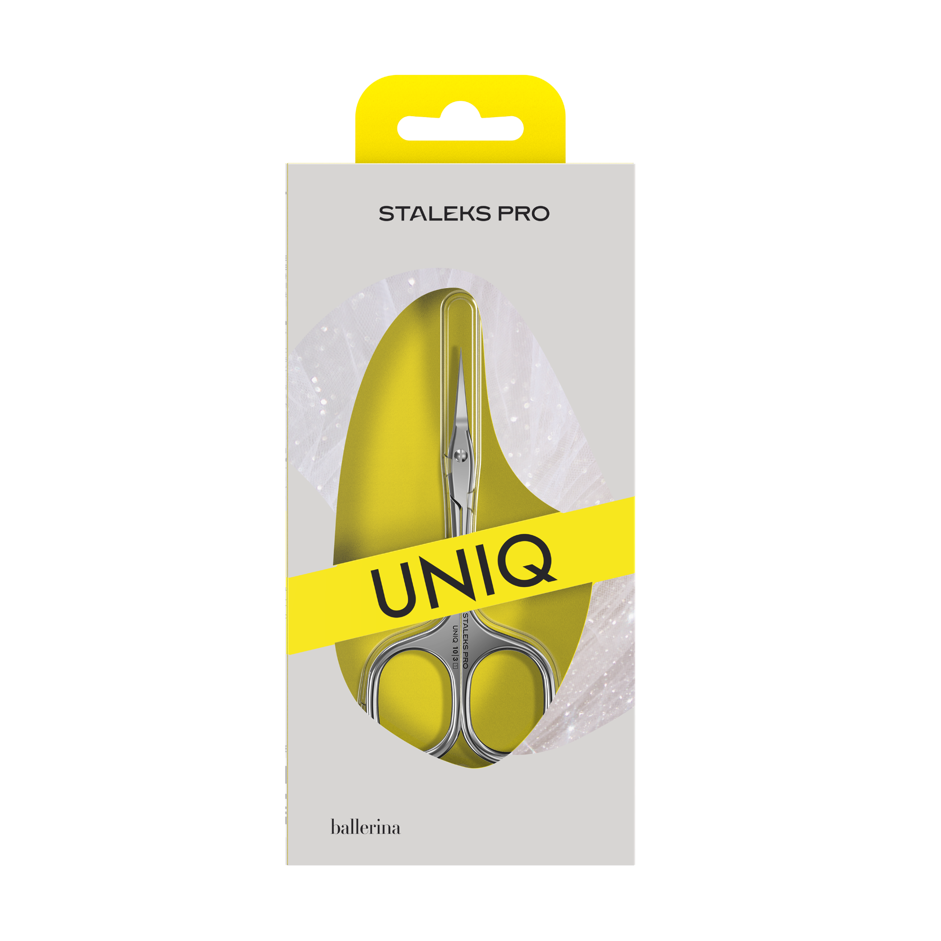 Staleks "Ballerina" Uniq 10 TYPE 3 manikúrové nožnice na kožičku SQ-10/3 predstavujú inováciu v jednoduchosti. Tieto elegantné nožnice patria medzi najladnejšie vo všetkom sortimente Staleks Pro. "Ballerina" je najdlhší model spomedzi všetkých nožníc od Staleks Pro.Nožnice majú nový, vylepšený tvar, ktorý zabezpečuje jednoduché používanie a presnosť pri každom pohybe. Ich elegantné rukoväte zaručujú ideálne umiestnenie v ruke, čím sa manikúra stáva príjemným umeleckým zážitkom. Saténový povrch nástroja je príjemný na dotyk, neodráža svetlo a nezaťažuje oči. Tenké, zúžené čepele nožníc zabezpečujú presný rez. Vyrobené s vysokolegovanou nehrdzavejúcou oceľou. Nožnice podľahajú dezinfekcii špeciálnymi prostriedkami a sterilizácii v suchej peci a autokláve bez straty kvality. Používajú sa na manikúru.